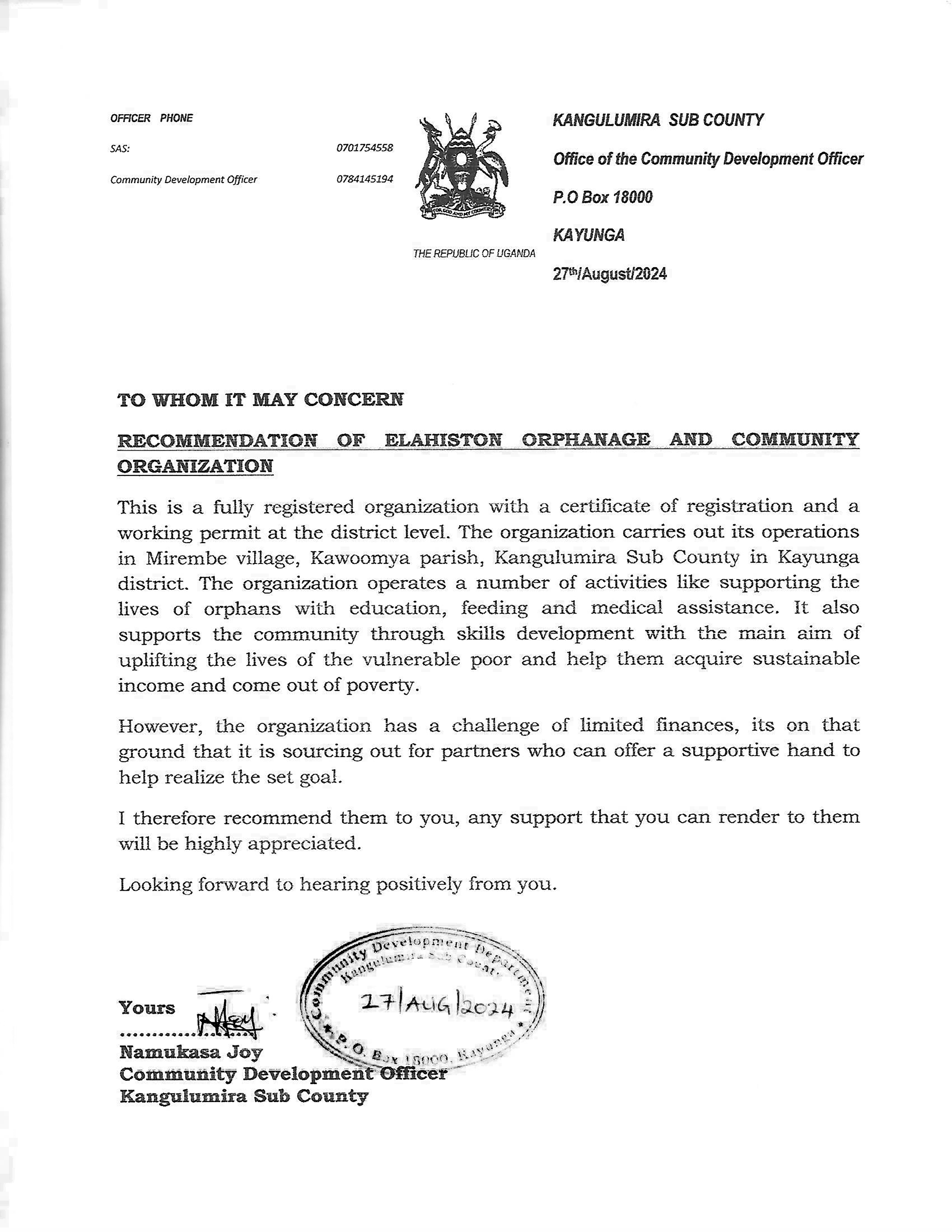 To foster education and trade skills while housing and feeding the orphaned and needy children of our community